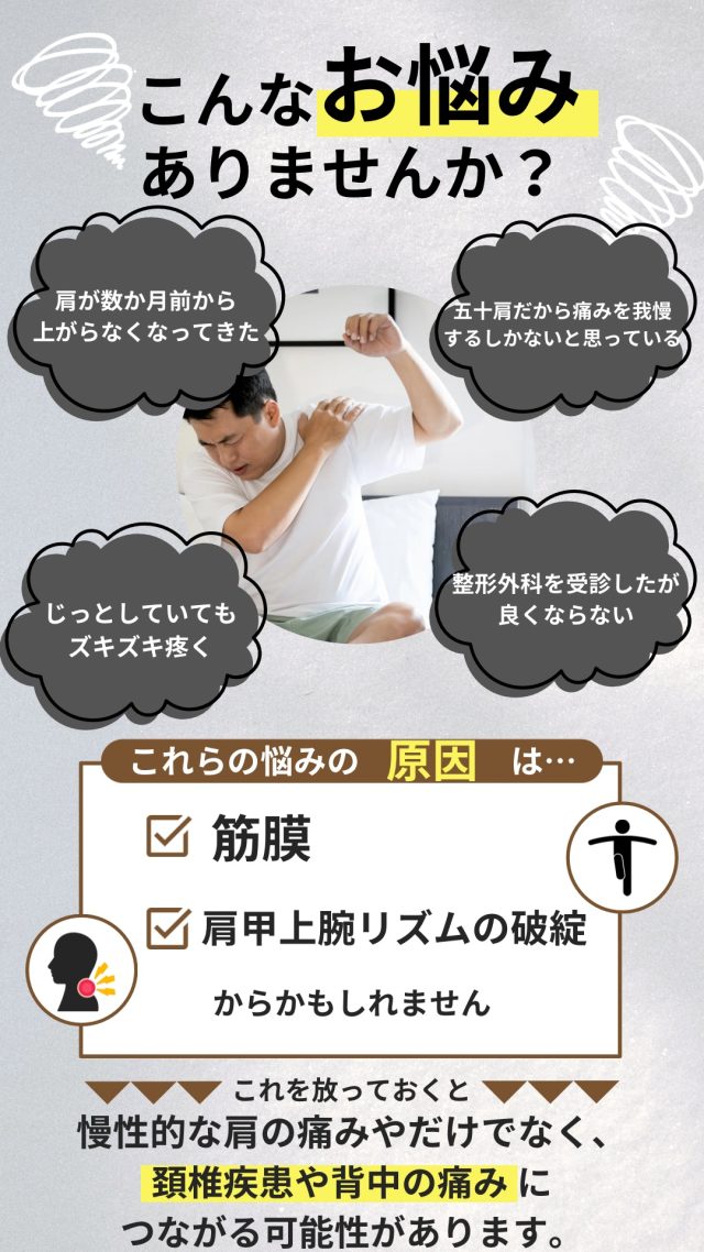 2〜3日前から急に腕が上がらず強い痛みがあり困っていました。