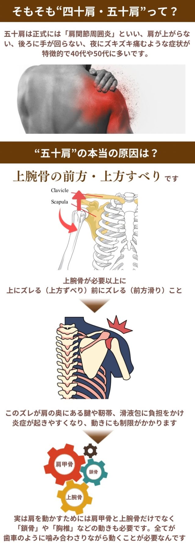 ・脊柱管狭窄症や五十肩、四十肩、変形性膝(股)関節症などの骨や人体が編成している場合