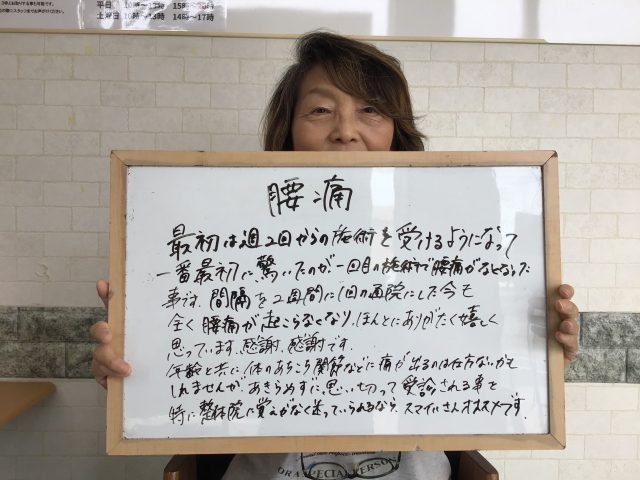 - ヘルニアの手術後、寝返りするだけで目が覚めてる程の腰痛で悩んでいた女性の改善までの経緯