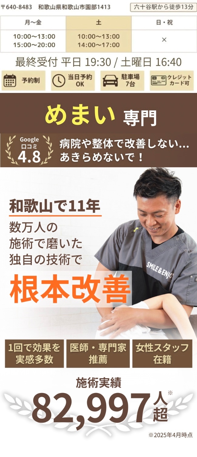 何をして良いかわからず、特に何もせず過ごしていましたがホームページを「首こり 和歌山」で検索していたら見つけました。
