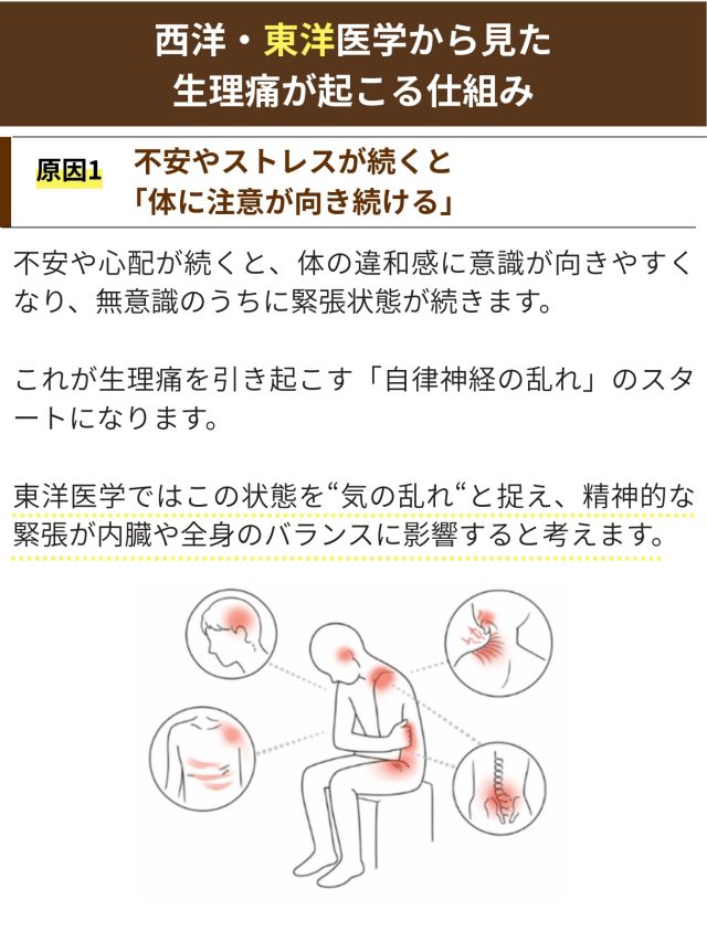生理痛やPMSで悩まれている方は毎月、毎月またしんどい期間が始まってしまうのではないかという不安を感じているように思います。